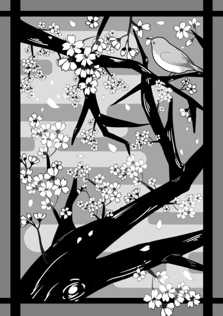右上の小鳥が ウグイス なら、花は梅を希望します。
