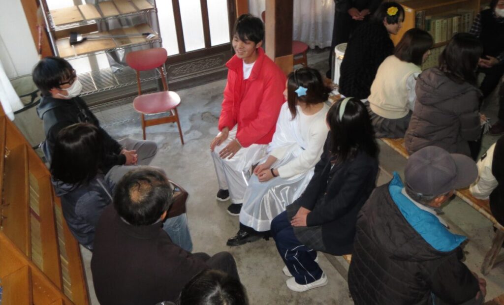 演劇終了後の学生さんと地域の人々の懇談が、大いに盛り上がったことです。