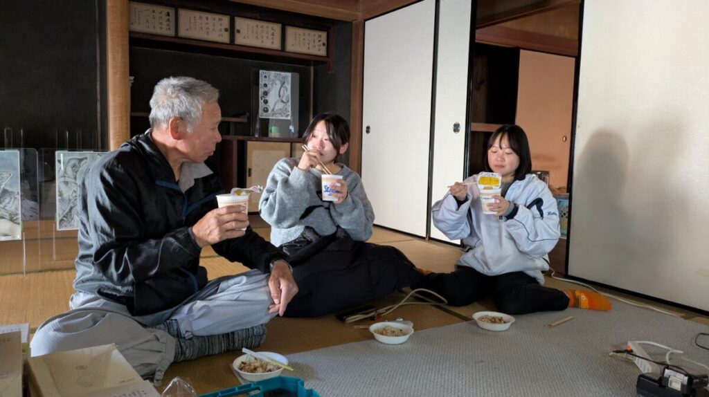 12時~ お昼は、昼食を兼ねた雑談会となりました。学生さんが兵庫県出身と徳島県出身と聞き、遠くから来られてることに関心
