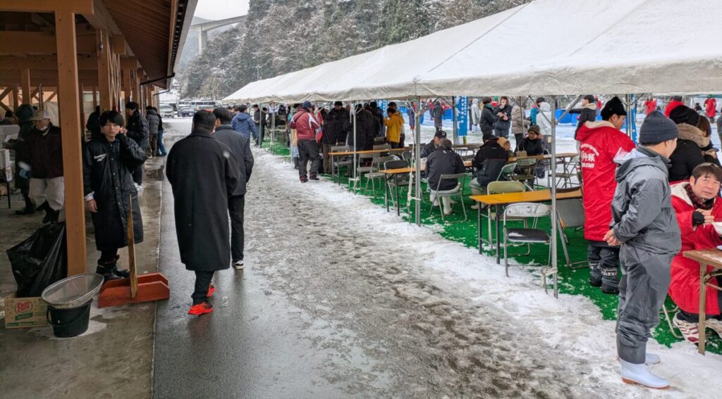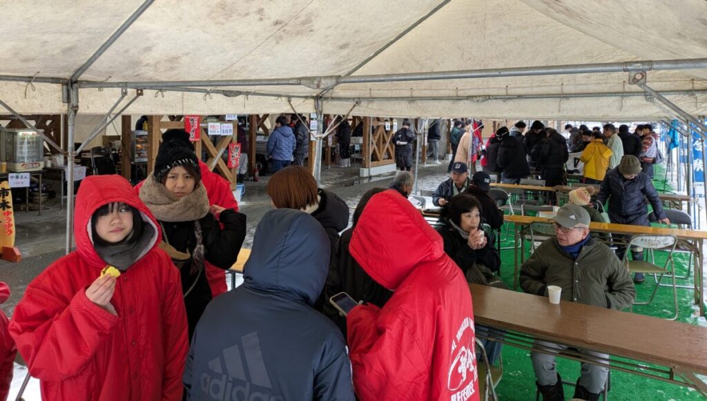 この様な寒さのお陰で、地元皆さんの出店は大繫盛?? (私も25日のお昼前にうどんを食べに覗きましたら、