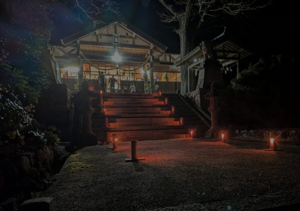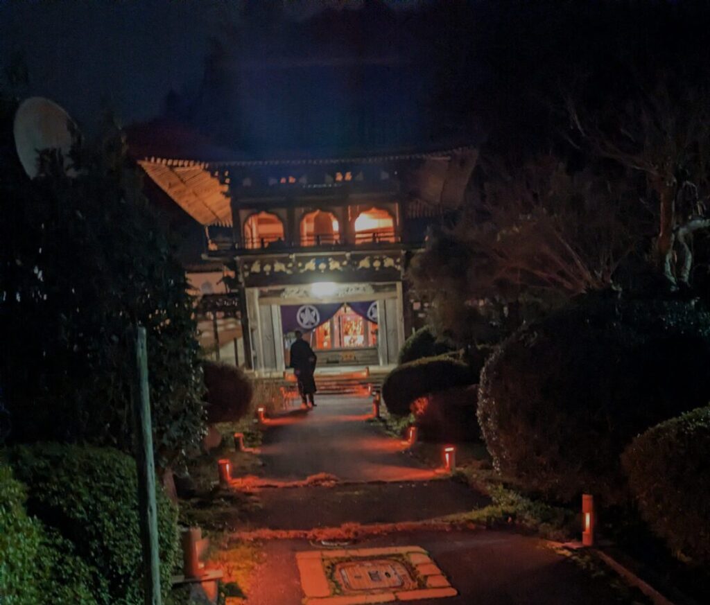 雪の無い正月なので、お宮やお寺の夜間初詣での人たちの足元を照らす灯篭を今年も設置しました。