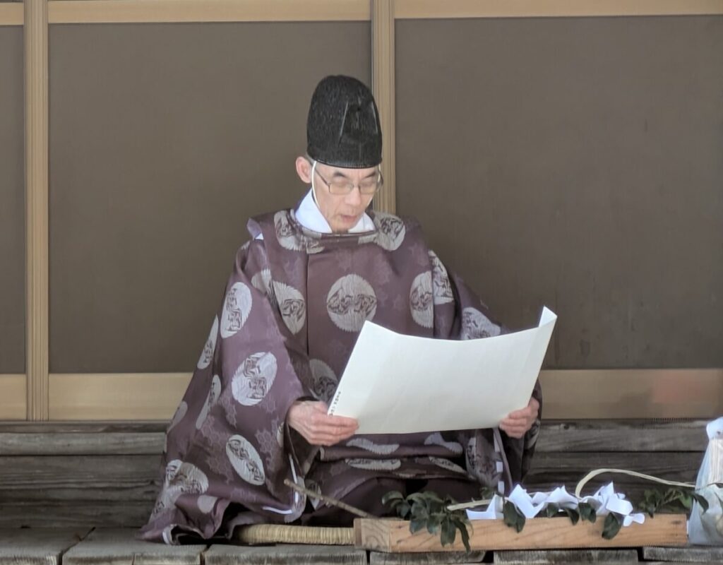 右下・境内には、昨日からの雪があるので参集殿、縁側より祭祀読み上げ