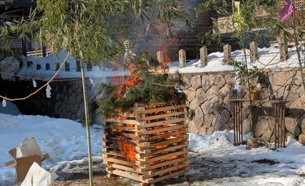 左下・徐炎?? 神社の門松や氏子さんからの古いお札やしめ飾りを焚き上げました。