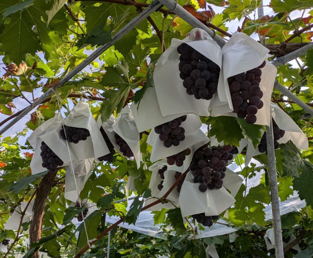 今年の現状は、シャインマスカットが約500房、ピオーネが約500房となっております。